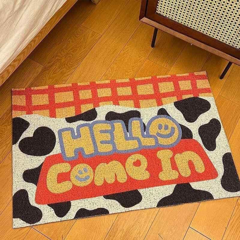 玄関マット キャラクター 牛柄 PVC コイル ループパイル 泥落とし 滑り止め フリーカット 耐摩耗 丈夫 ウォッシャブル 室内 玄関用