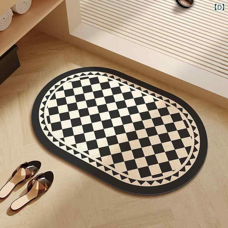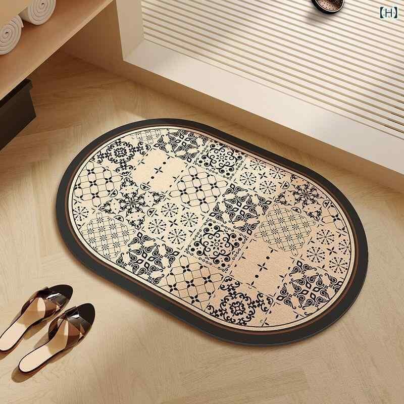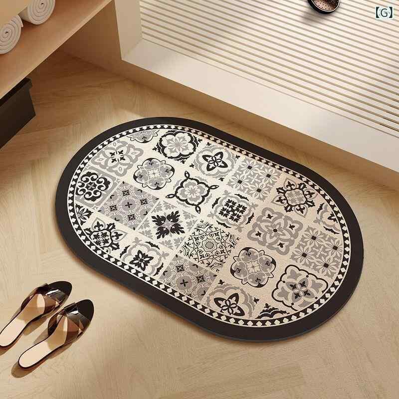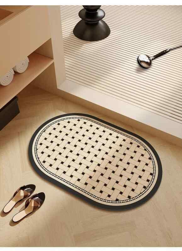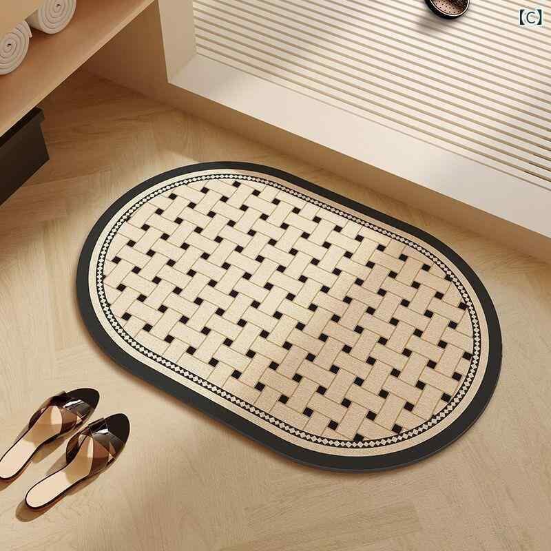 マット 珪藻土 北欧風 滑り止め 吸水 速乾 耐久性 楕円形 バスマット フロアマット 玄関マット ラグ 幾何学模様 バスルーム 脱衣所 洗面所 エントランス