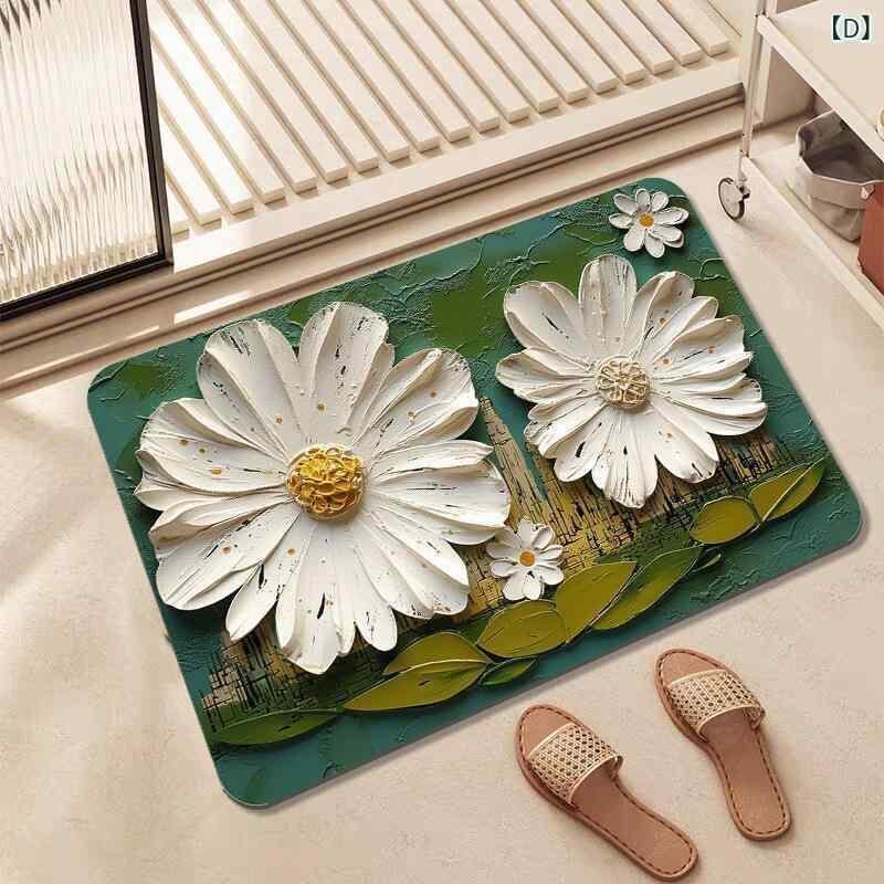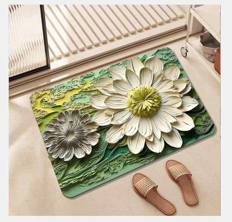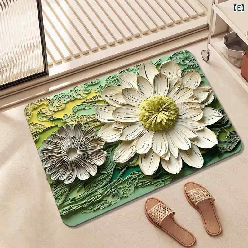 マット 玄関 バスマット 珪藻土 3D効果 蓮柄 オーバル チャイニーズモダン 吸水 速乾 防滑 洗える プリント 植物柄 キッチン 洗面所 フロアマット おしゃれ かわいい