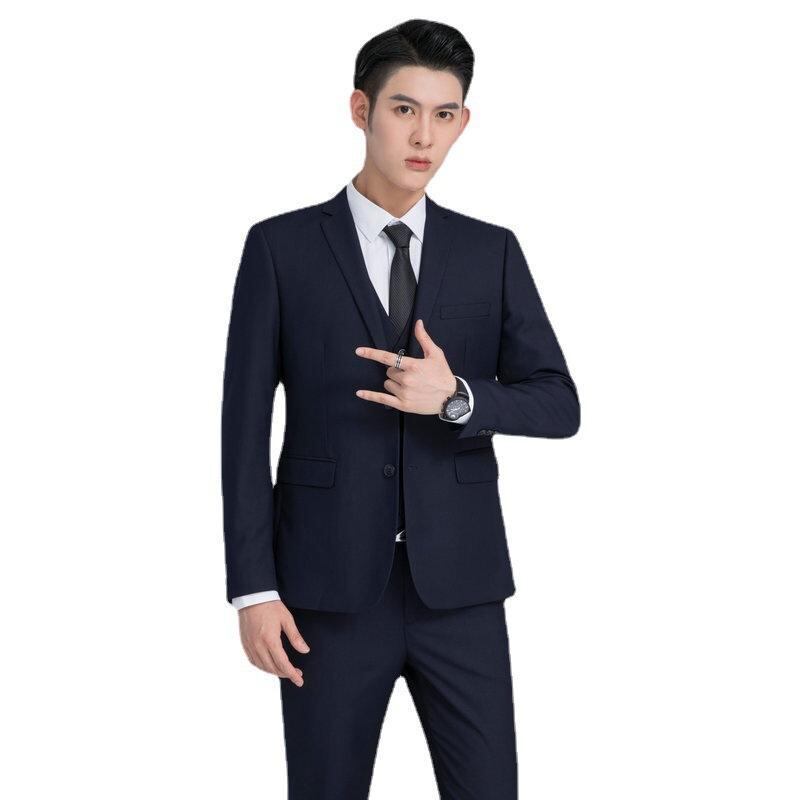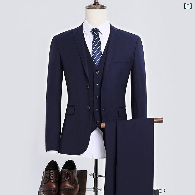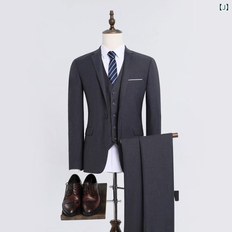 スーツ メンズ 男性用 スリーピース セットアップ 韓国風 スリムフィット 細身 ビジネス フォーマル 通勤 結婚式 披露宴 パーティー オールシーズン コットンブレンド アセテート繊維