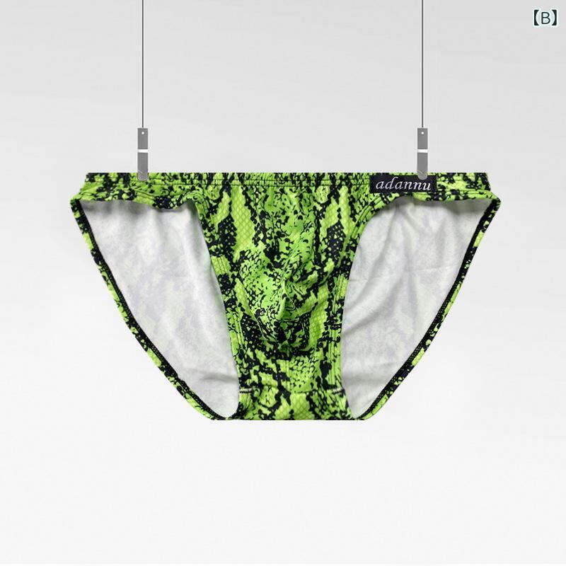 ・主な素材: ナイロン 50-70% ・機能: 通気性 ・織り方: ニット ・股部分裏地: ナイロン 50-70% ・柄: アニマル柄 ・ウエスト: ローウエスト ・カラー展開: イエロー、グリーン、ホワイト ・サイズ展開: M、L、XL、XXL ・対象: 成人 ・スタイル: ブリーフ ・性別: メンズ