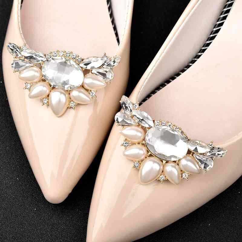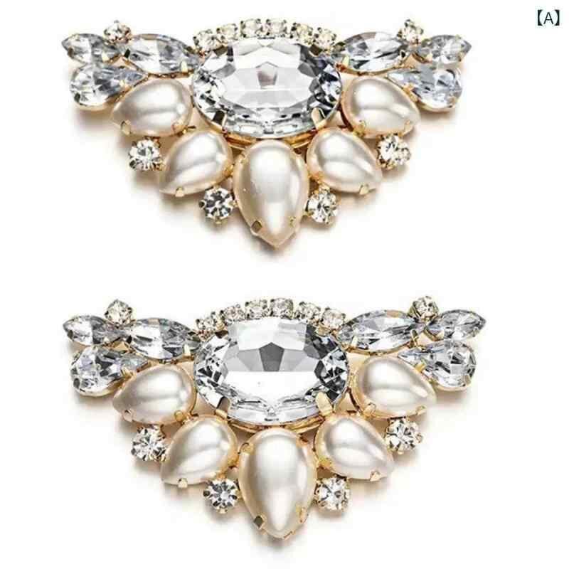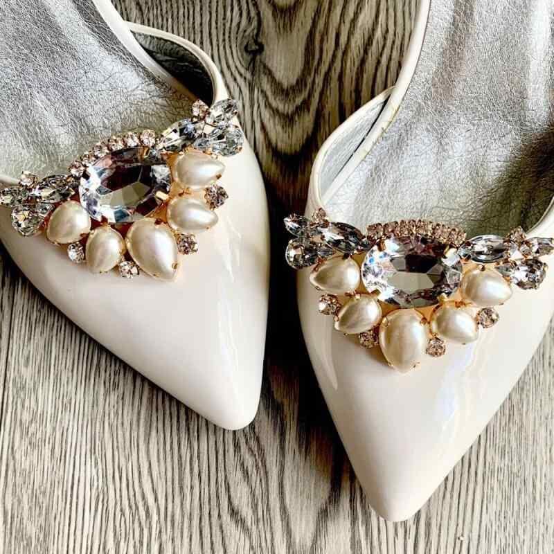 靴飾り レディース パール クリスタル 着脱式 シューズクリップ パンプス ヒール フラットシューズ用 ゴールド 2個セット ワンポイント エレガント 華やか 上品 結婚式 パーティー 二次会