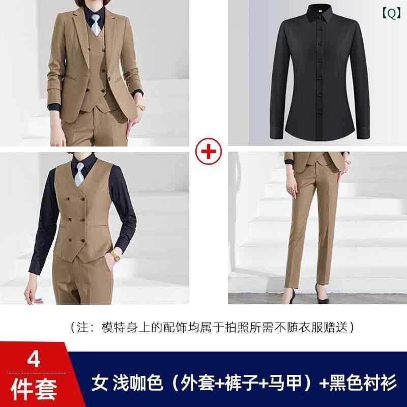 スーツ 男女兼用 スモーキーブルー ビジネス オフィス フォーマル スリーピーススーツ セットアップ ジャケット ベスト スラックス 通勤 営業職制服 高級感