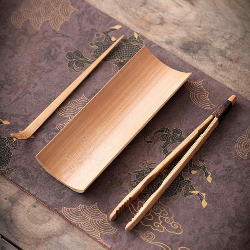 茶道具 炭化竹製 茶則 茶挟 茶撥 3点セット 手作り 天然素材 無塗装 モダン 和風 新中式 茶席 茶会