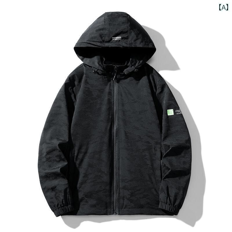 ジャケット メンズ ビッグサイズ ルーズフィット 春秋 トレンド カジュアル フード付き 迷彩柄 アウター アウトドア スポーツ 通気性 防風
