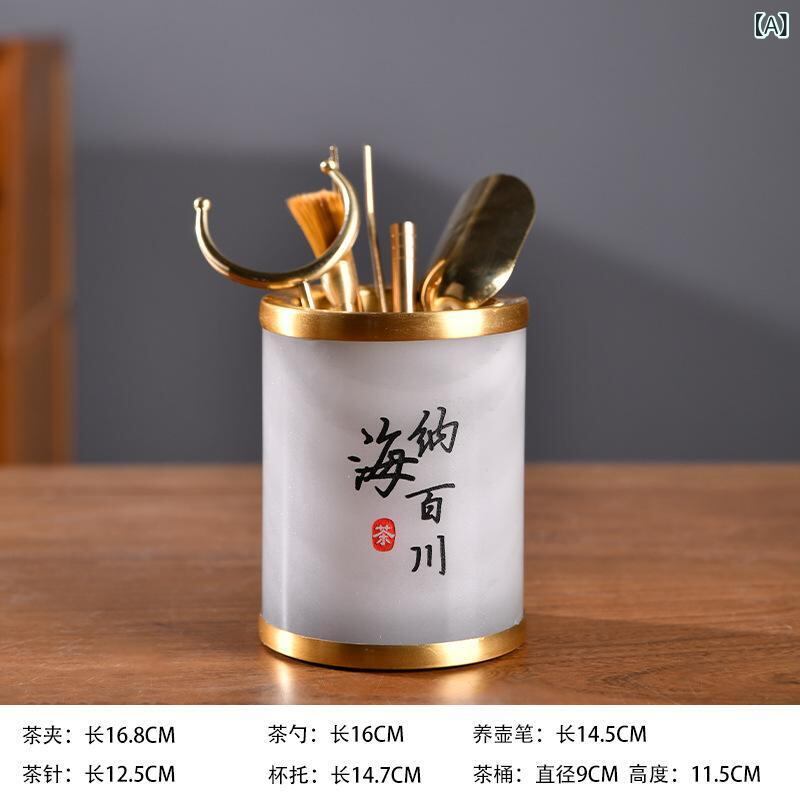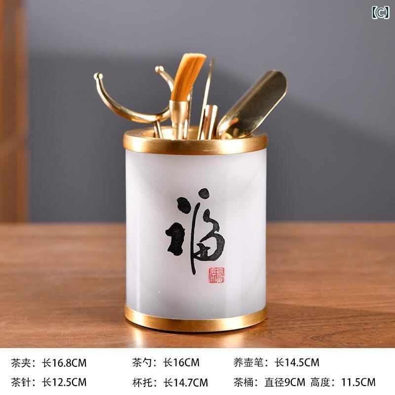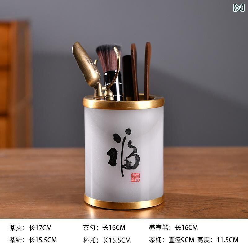 茶道具 玉石 功夫茶道 六君子セット 茶器 筆筒 茶挟 茶則 養壺筆 真鍮 黒檀 中華風 中国茶