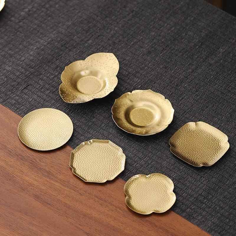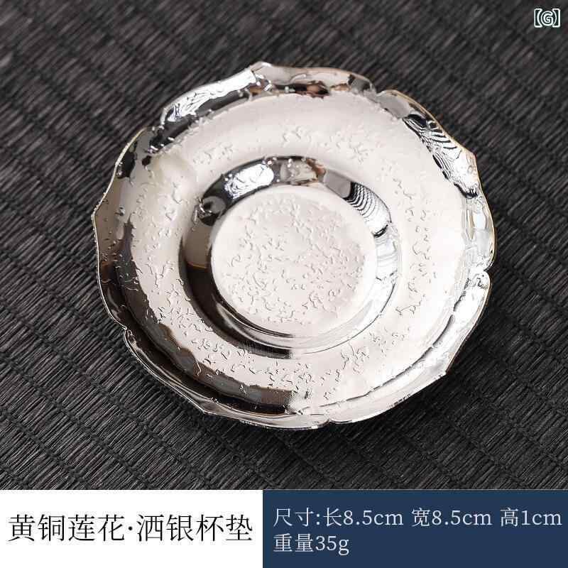 コースター 茶托 真鍮 赤銅 銅製 槌目模様 耐熱 断熱 防熱 おしゃれ 和モダン 禅風 新中式 茶道 功夫茶 お茶 来客用 卓上 四角 八角 丸 四つ葉 蓮 元宝 花柄 ゴールド系 レッド系 茶道具 小物