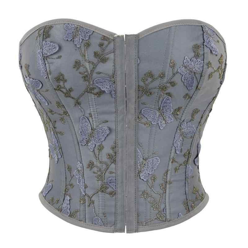 チューブトップ レディース ストラップレス ベアトップ バストアップ コルセット ウエストシェイパー 蝶々刺繍 レースアップ かわいい ベスト アウター 普段使い