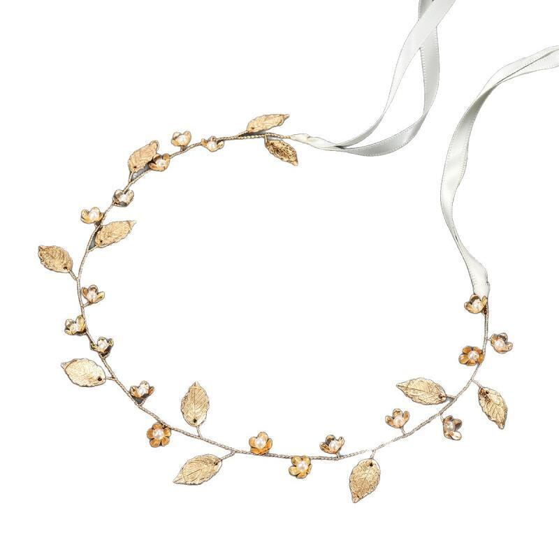 髪飾り レディース 結婚式 ブライダル ウェディング 花嫁 新婦 ゴールド 金色 合金製 リーフ 葉っぱ フラワー 花 モチーフ 手作り ハンドメイド ソフトチェーン ヘッドドレス ヘアアクセサリー カチューシャ