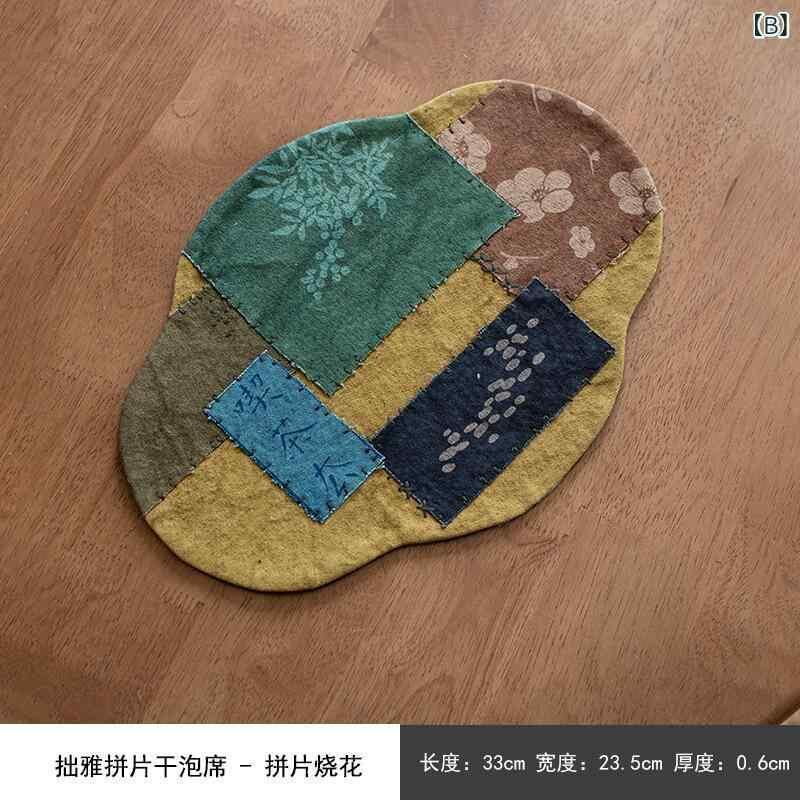 茶席マット 絞り染め ハンドメイド パッチワーク 刺繍 アウトドア 乾泡用 厚手生地 テーブルランナー 綿麻 ティーポットマット カイドウ柄 ミニサイズ 手書き 新中国風
