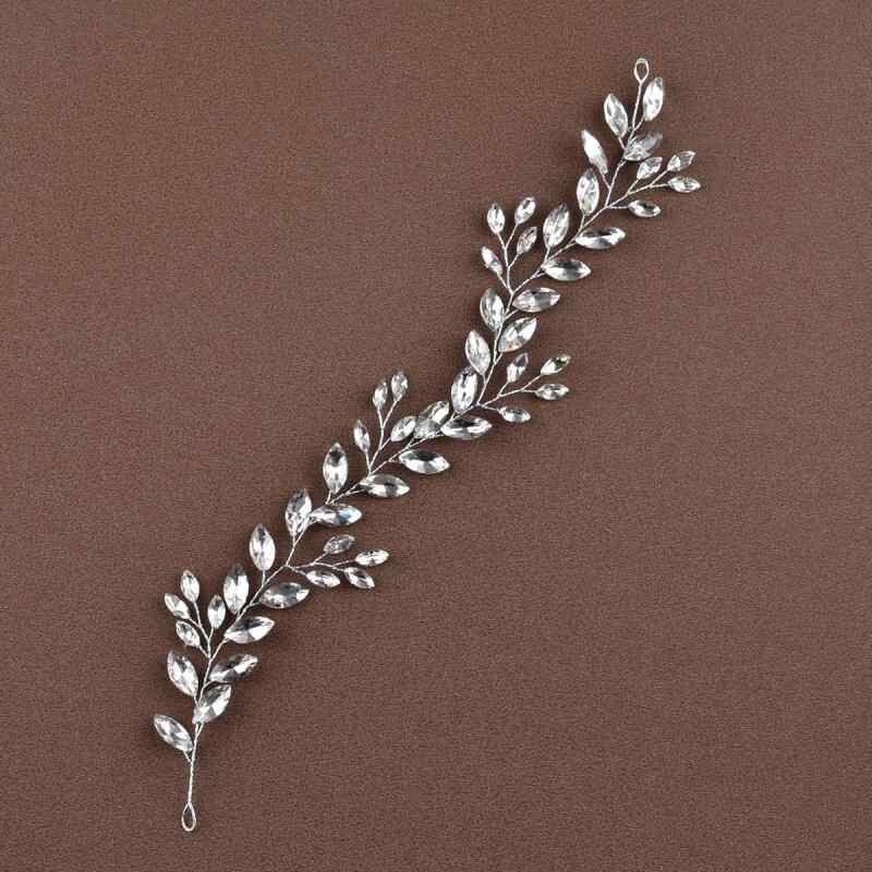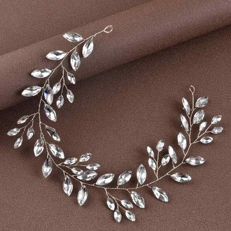 髪飾り レディース ヘアアクセサリー ガラス マーキスカット ラインストーン ソフトチェーン 手作り ハンドメイド 華やか エレガント 上品 花嫁 ウェディング ブライダル 結婚式 披露宴 二次会 パーティー ゴールド シルバー