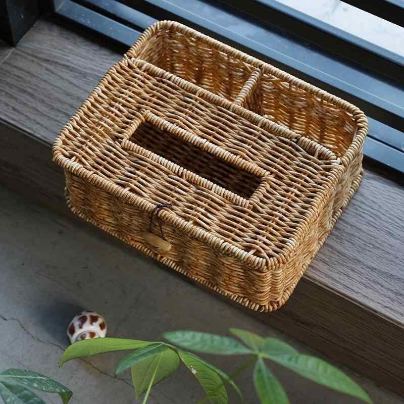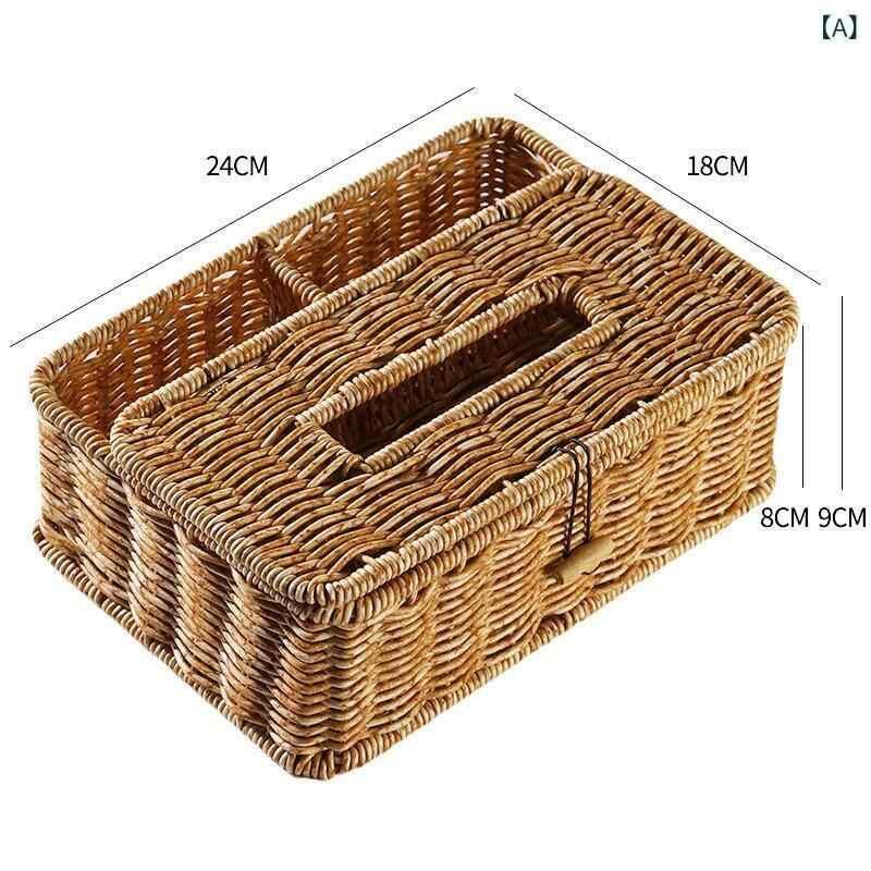 ティッシュケース 多機能 リモコン収納ボックス 家庭用 リビング ローテーブル 北欧風 モダン シンプル 高級感 樹脂ラタン 防水 小物入れ 車内 洗面所 ブラウン系