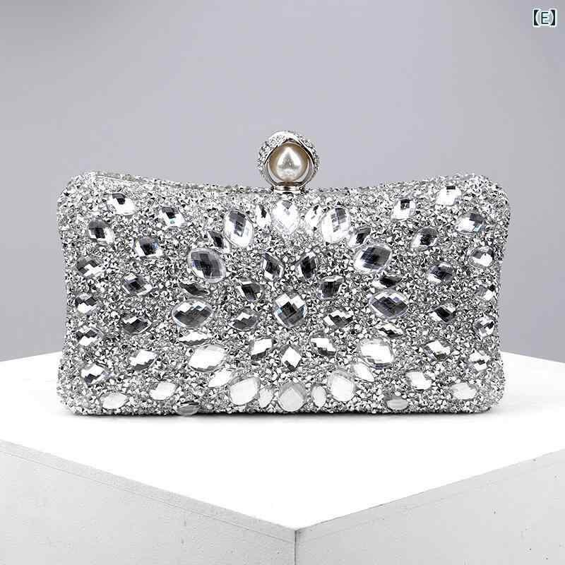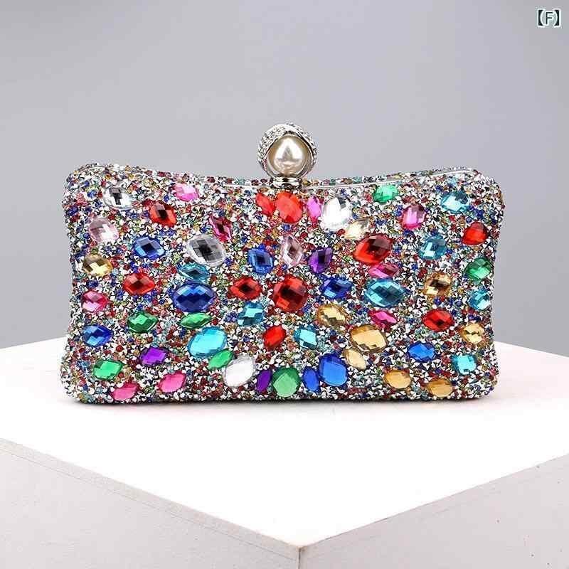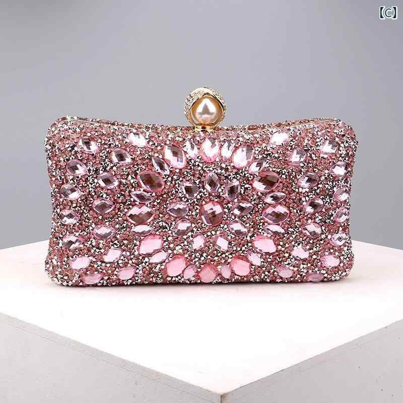 鞄 レディース レトロ モダン ラインストーン装飾 がま口 半月型 ピロー型 イブニング クラッチ ハンドバッグ チェーンストラップ 結婚式 パーティー 披露宴 フォーマル 合成皮革 ソフト グリーン ピンク ゴールド シルバー マルチカラー