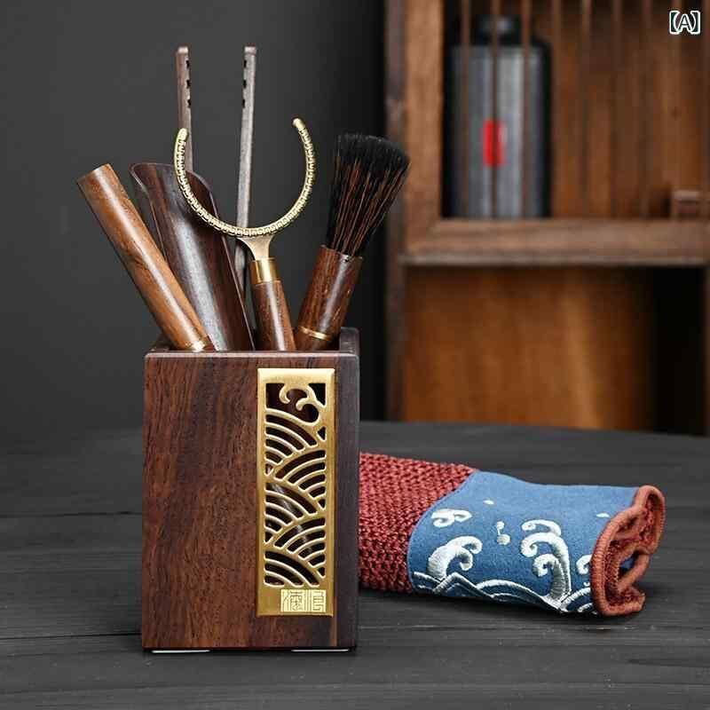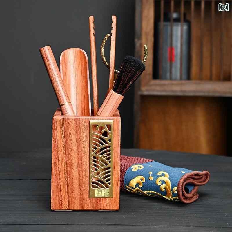 茶道具 黒檀 花梨 無垢材 真鍮製 六君子セット 中国茶器 茶挟 茶針 茶匙 茶筒 茶托 高級感 上品なデザイン 和モダン 普段使い おもてなし 来客用 自宅用 茶室 リビング オフィス 中国茶 日本茶 煎茶