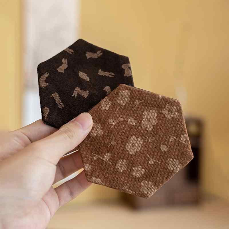 コースター 新中国風 和モダン 六角形 布製 ファブリック 絞り染め 焼花柄 レトロ 断熱 茶器マット 茶道小物 普段使い 来客用 おしゃれ インテリア小物