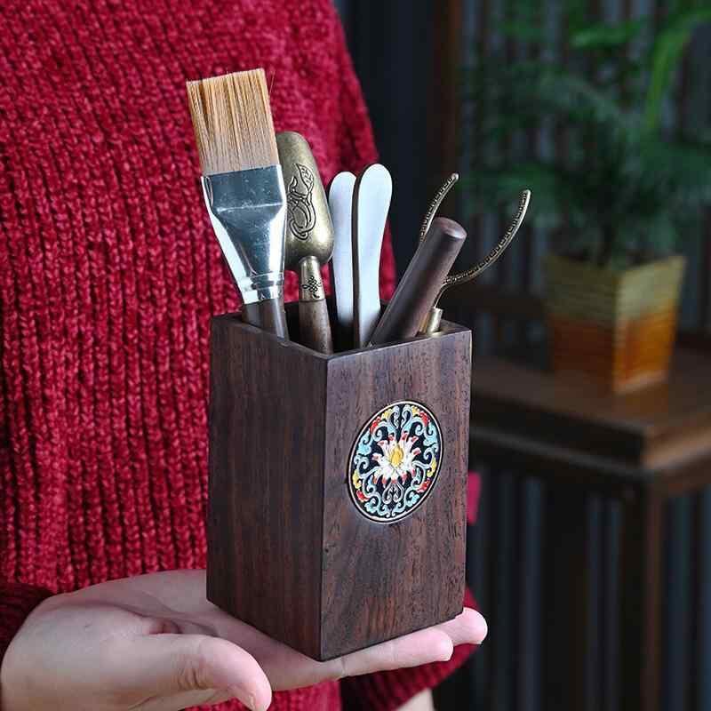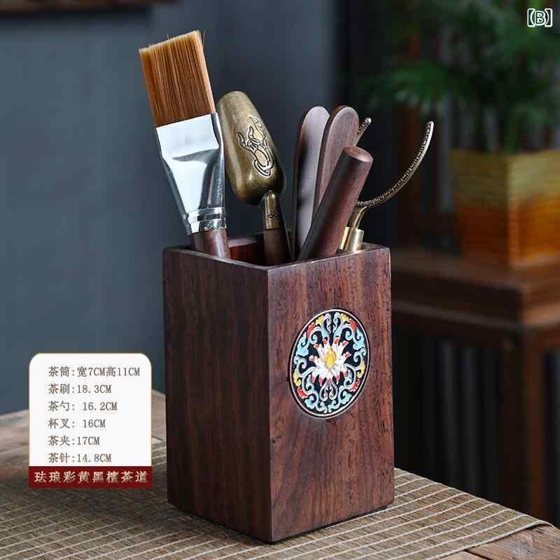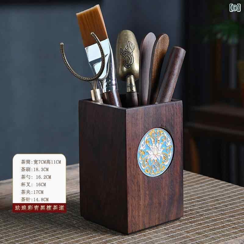 茶盤 茶道具 黒檀無垢材 天然木製 七宝焼き モダンチャイニーズ 中国茶器 六点セット 来客 おもてなし 高級感