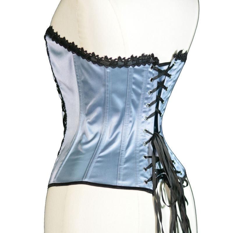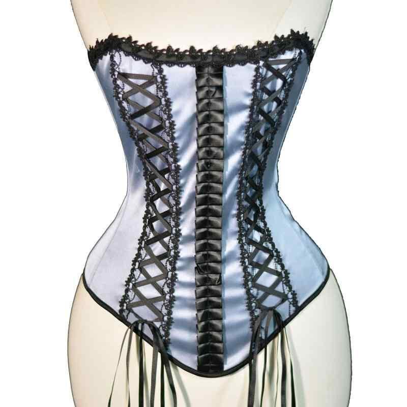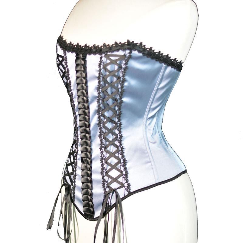 ビスチェ コルセット ボーン入り サテン レース バック編み上げ ウエストシェイプ スタイルアップ ショート丈 アウター トップス エレガント スカイブルー 春夏