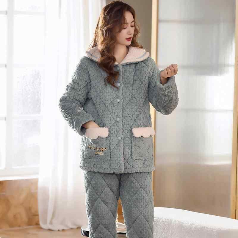 パジャマ レディース 秋冬 フランネル サンゴフリース 中綿入り 裏ボア 厚手 3層構造 あったか 前開き 襟付き 長袖 長ズボン 部屋着 ホームウェア 保温 防寒 快適