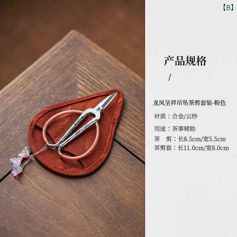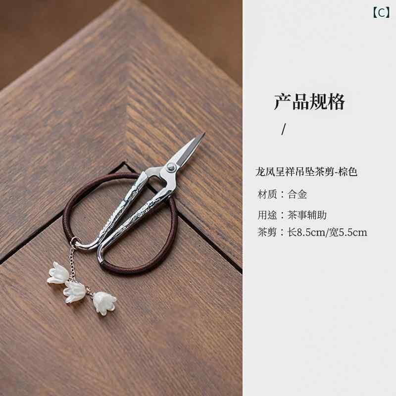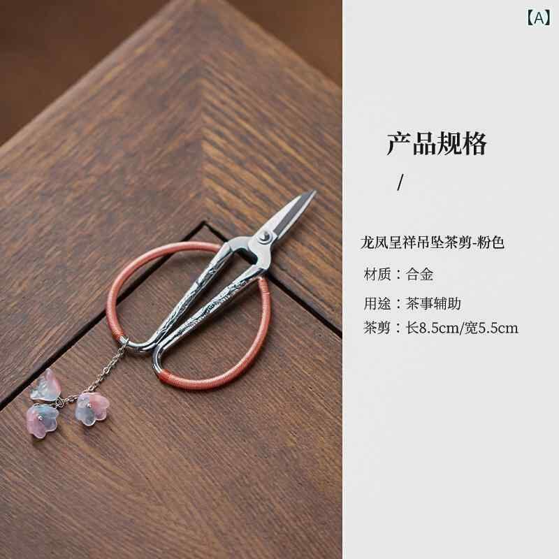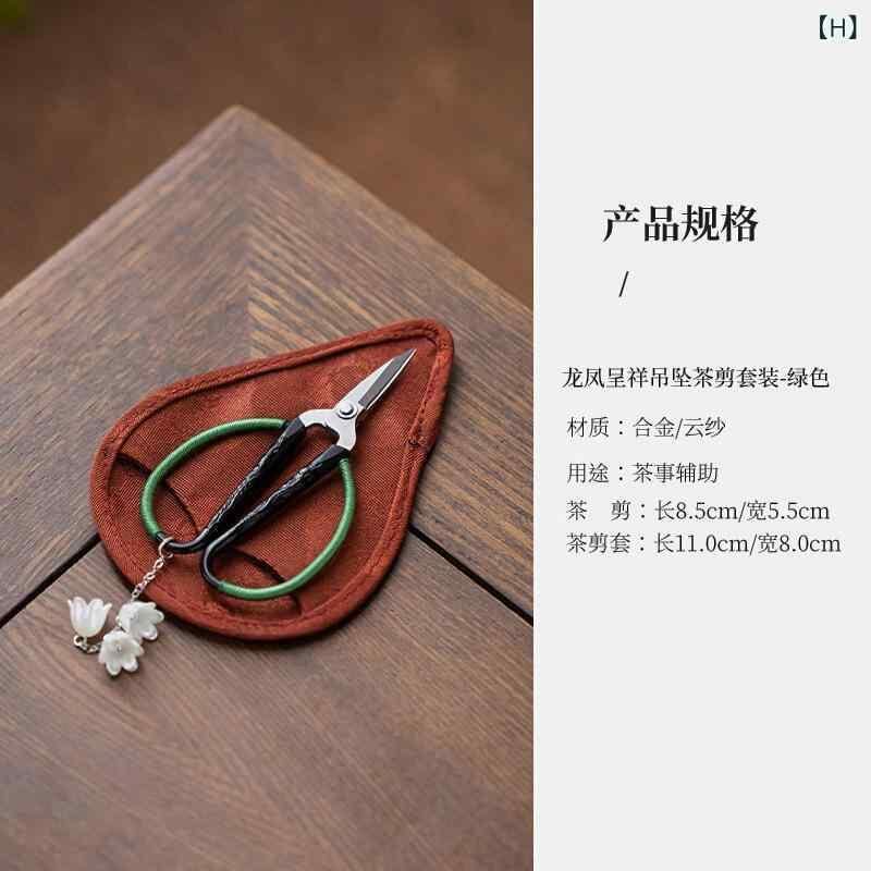 茶道具 ティーハサミ 龍鳳呈祥チャーム付き 茶葉カット用 中華茶芸 功夫茶器 家庭用 新中式スタイル 収納袋付き 合金製 コンパクト カラフル