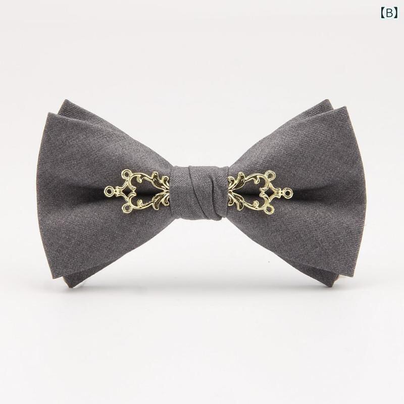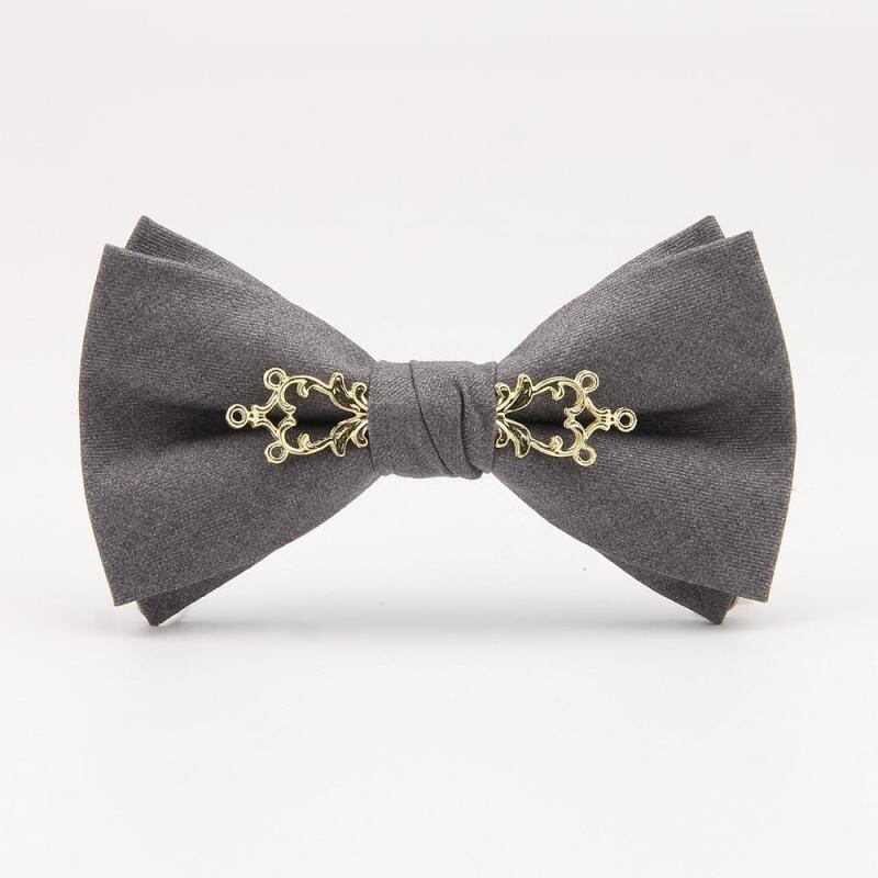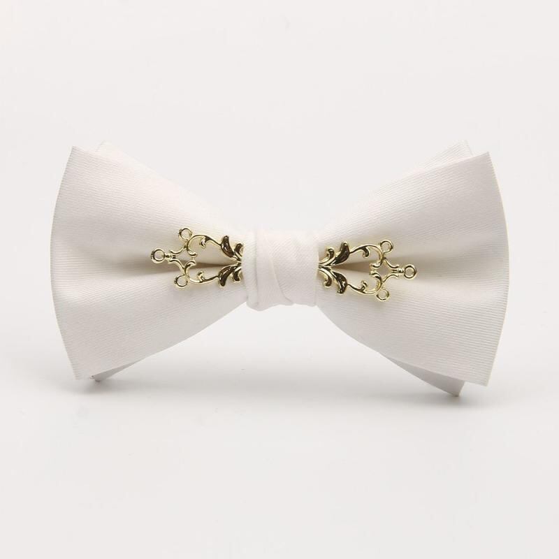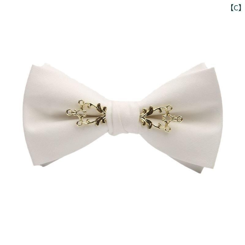 蝶ネクタイ メンズ 男性用 おしゃれ スタイリッシュ メタルフラワー装飾 韓国風 無地 ソリッドカラー ホワイト 新郎 結婚式 披露宴 二次会 パーティー 宴会 イベント ウェディングフォト 前撮り ボウタイ コットンブレンド フラットエンド型 ブラック