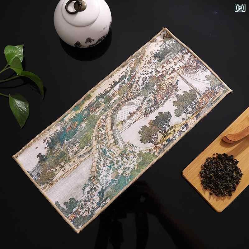 茶巾 スエード調 コーラルベルベット 功夫茶用 中国風 古風 彩絵 厚手 吸水速乾 テーブル拭き 台拭き