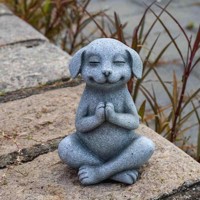 オブジェ ヨガ犬 瞑想犬 仏像 禅 樹脂製 フェイクストーン ガーデン 庭園 屋外 屋内 インテリア 玄関 リビング ベランダ 装飾 アニマル 像 ユニーク 癒し 置物