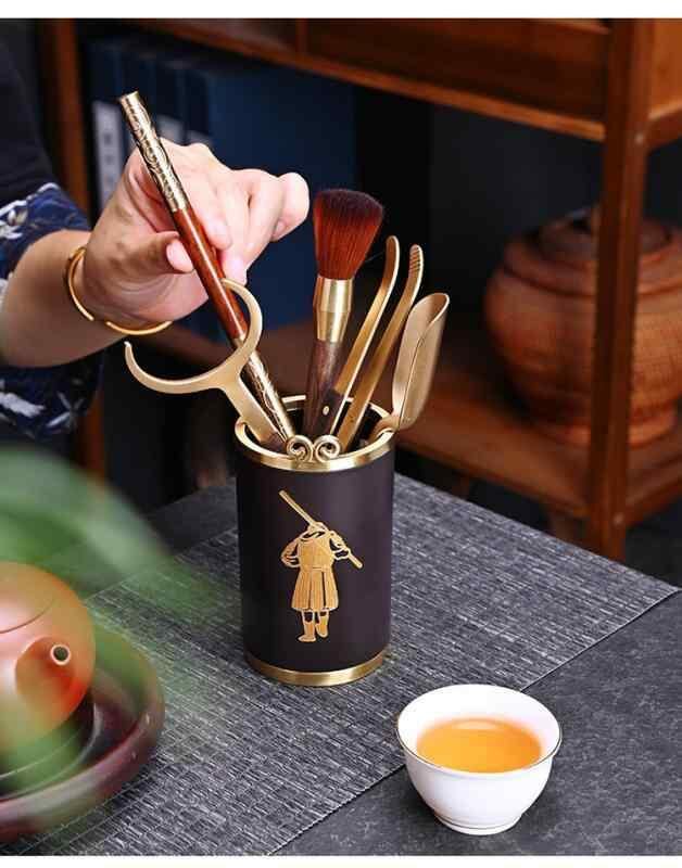 茶道具 中国茶器 ベークライト 茶道六君子 六点セット おしゃれ モダン 功夫茶 台湾茶 本格 お茶淹れ ティーセット ツールスタンド 茶壺ブラシ 茶挟 茶刀 実用的 便利 ゴールド