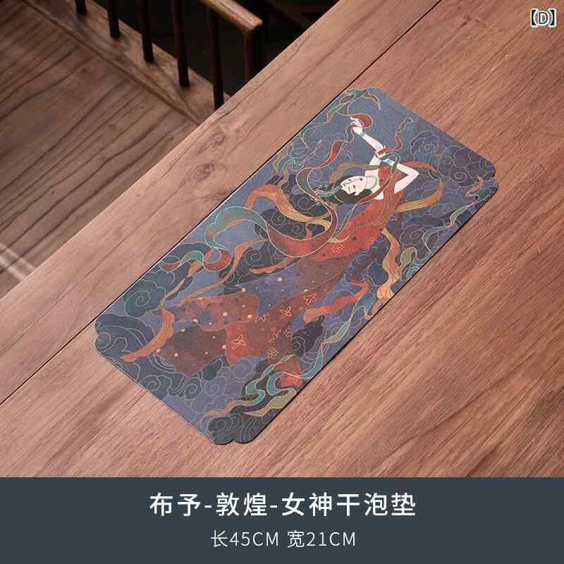 茶道マット 新中式スタイル 乾泡用 両面 リバーシブル 多機能 多用途 家庭用 茶席 ティー敷物 ポット敷き テーブル敷物 布製 蓮柄 波柄 敦煌デザイン