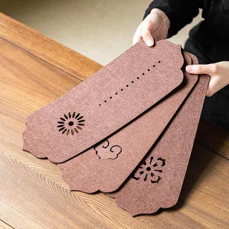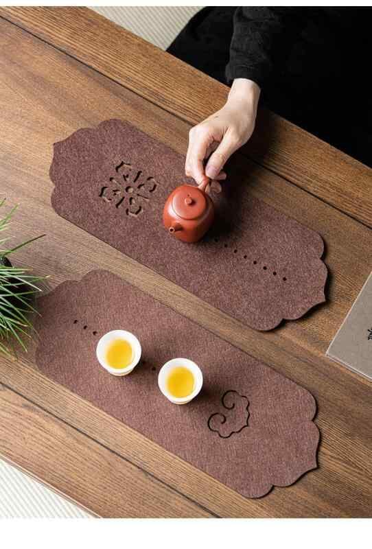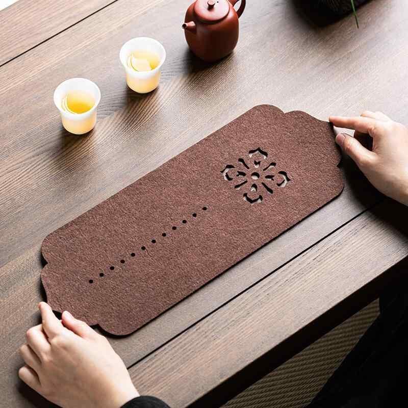 茶席マット 中華風 オリエンタル モダン 透かし彫り レースデザイン 防水 速乾 吸水 耐熱 洗える 布製 ファブリック コースター 茶托 急須マット ティーポットマット 茶器 茶道具 普段使い 来客用 お茶会