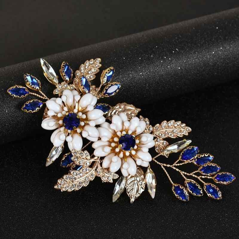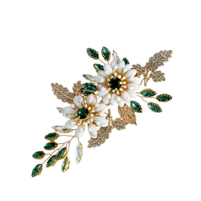 ヘアクリップ 髪飾り ブライダル ウェディング 結婚式 披露宴 二次会 パーティー エメラルドグリーン ゴールドカラー リーフモチーフ 合金 ラインストーン 華やか 上品 エレガント フォーマル