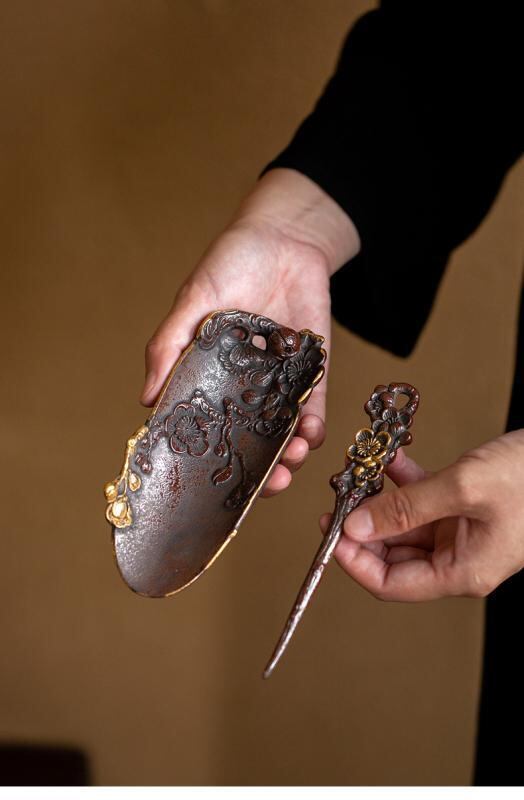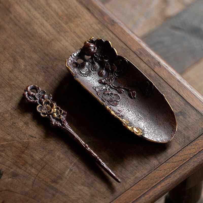 茶道具 中国風 陶器 茶則 手彫り 浮き彫り 梅柄 レトロ アンティーク 茶葉鑑賞 茶荷 茶匙 功夫茶器 茶道小物 茶席 お茶会 高級感