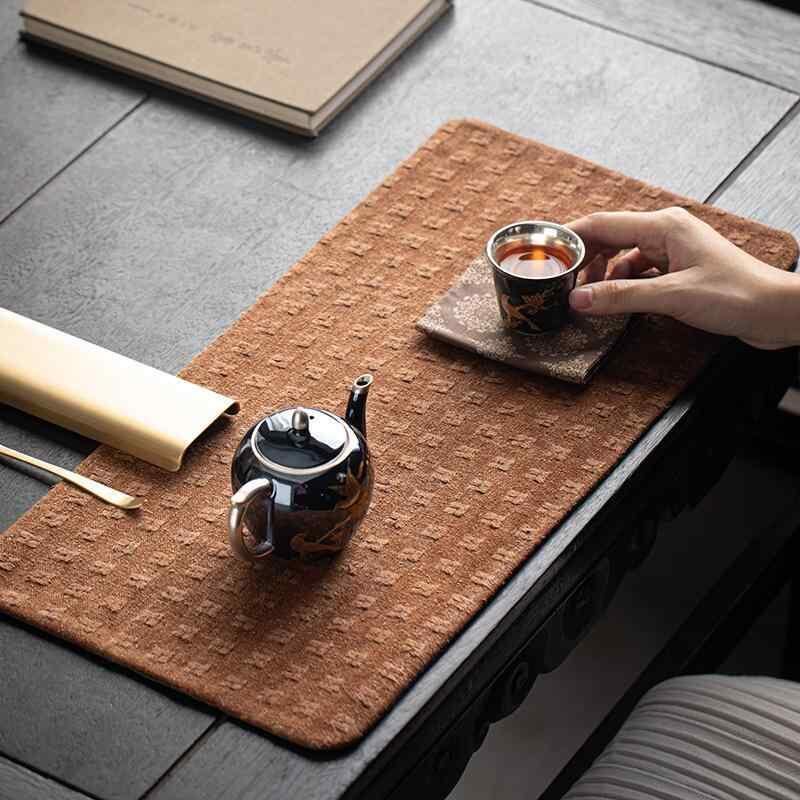 茶席 タッサーシルク 香雲紗 乾泡マット 断熱 茶器マット ファブリック テーブルランナー 家庭用 茶道用 新中式 高級感 インテリア おもてなし