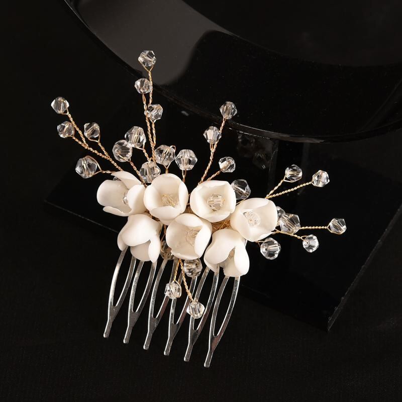 ヘッドドレス レディース ブライダル 新婦 結婚式 ウェディング 手作り 樹脂 花 フラワーモチーフ 差し込み式 ヘアコーム エレガント 上品 ホワイト