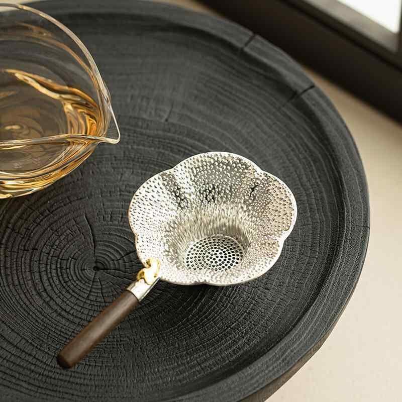 茶道具 手作り 鎚目 ギルトシルバー 銀メッキ 茶こし 茶葉スプーン 茶葉用じょうご 高級感 おしゃれ 上品 シルバー 合金製 シンプルモダン ティータイム 普段使い