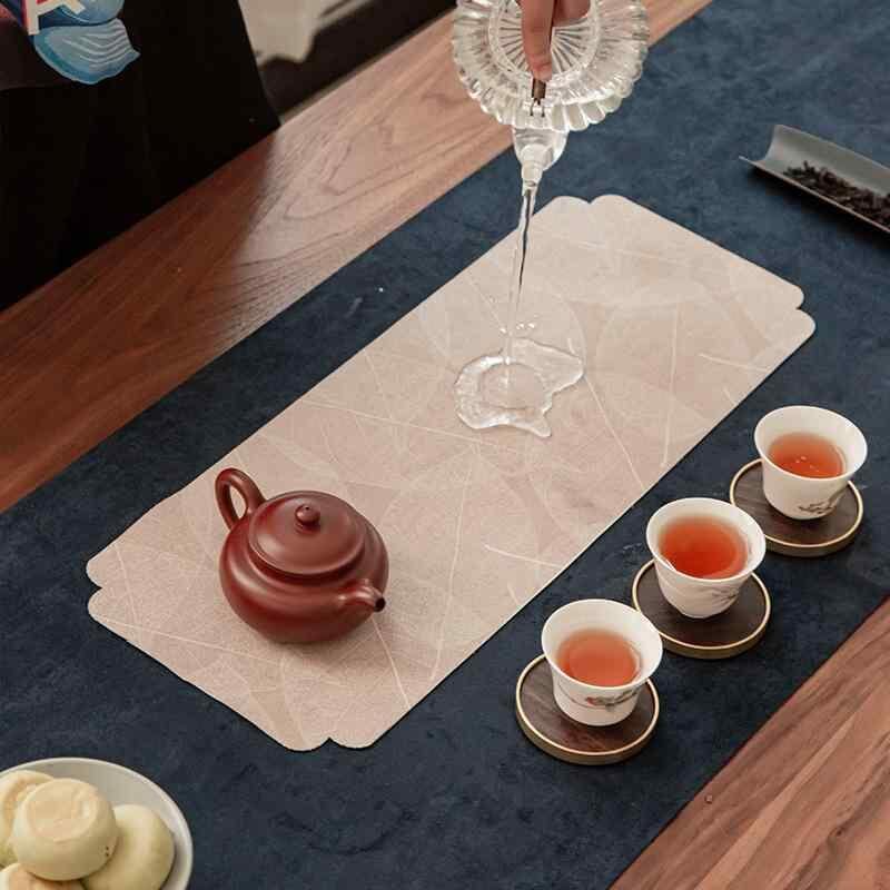 茶席 鹿革調スエード フェイクレザー ベロア 布製 新中華風 和モダン 功夫茶道 テーブルランナー 茶盤マット 茶器敷き 防水 水濡れ防止 速乾 鶴 アジサイ イチョウ 花鳥柄