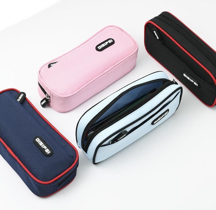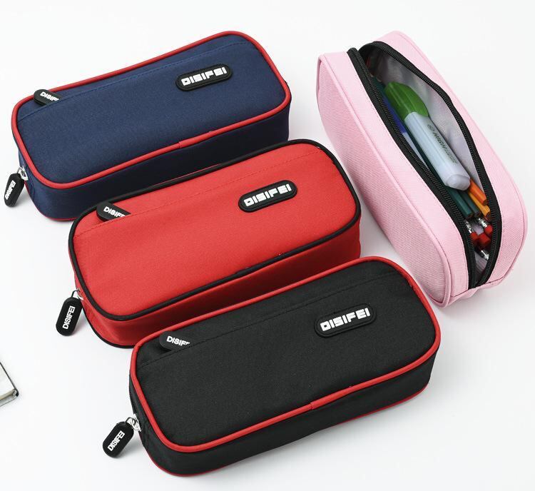 ペンケース 学生 男女兼用 男の子 女の子 無地 シンプル おしゃれ かわいい 大容量 ダブルファスナー 二層式 軽量 帆布 キャンバス 通学 塾 習い事 文房具 収納 多機能