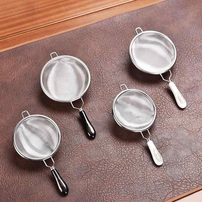 茶こし ステンレス ティーフィルター 茶葉 茶殻 ストレーナー 茶漉し 網 茶器 茶道具 中国茶道 お茶用品 シンプル モダン スタイリッシュ おしゃれ 陶器持ち手 スタンド付き 耐久性 再利用可能