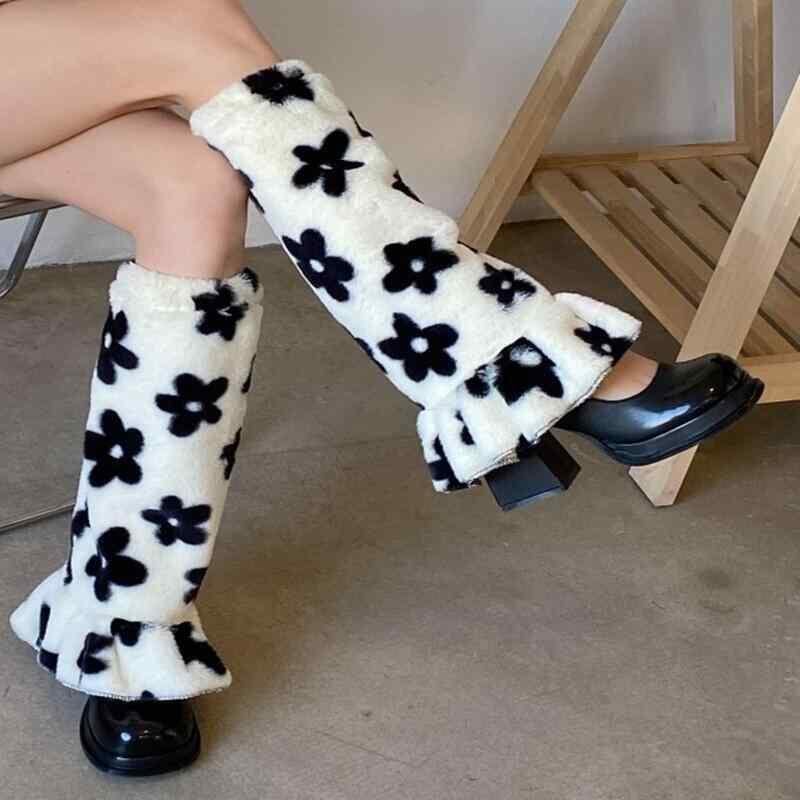 レッグウォーマー レディース ヒョウ柄 アニマル柄 Y2Kスタイル フレア ワイド もこもこ ふわふわ 厚手 防寒 保温 暖かい あったか クシュクシュ ニーウォーマー ポリエステル コットン ミドル丈 普段使い ストリートファッション