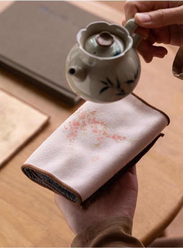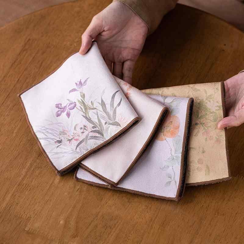 茶巾 高級感 スエード製 吸水 速乾 長方形 小型 柿柄 桃柄 ティーマット 茶敷き 茶布 茶道 茶芸 来客用 和モダン テーブルウェア