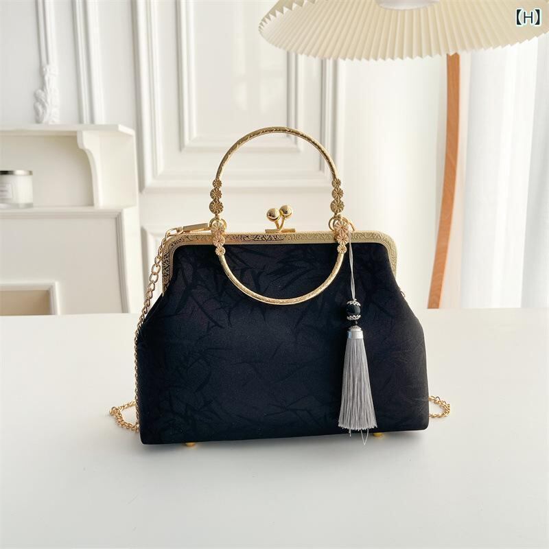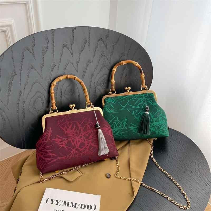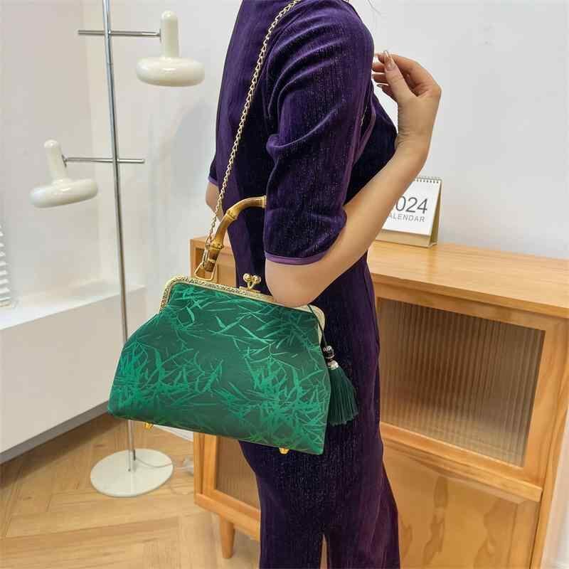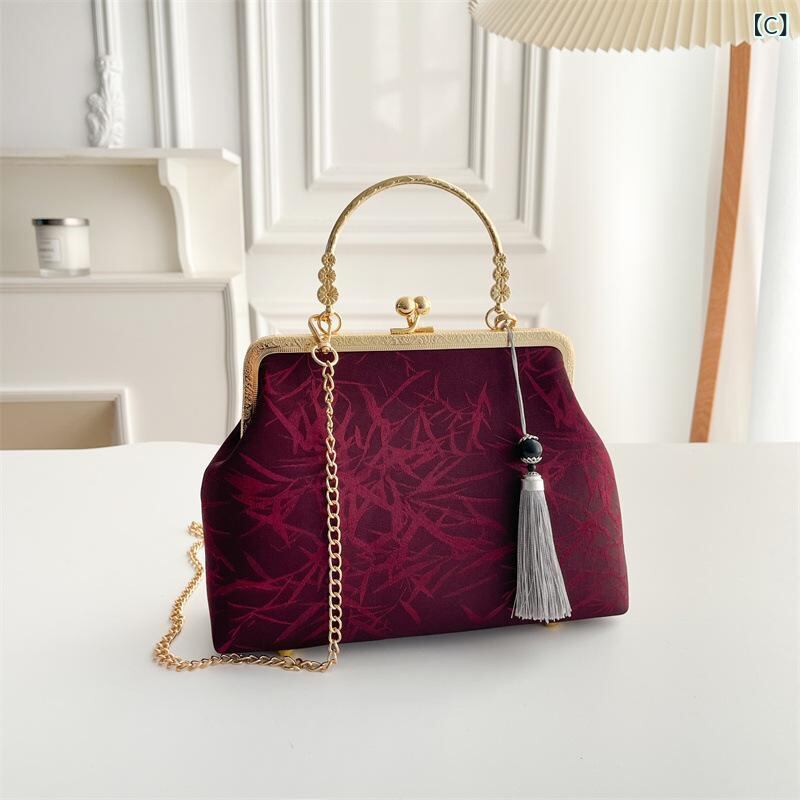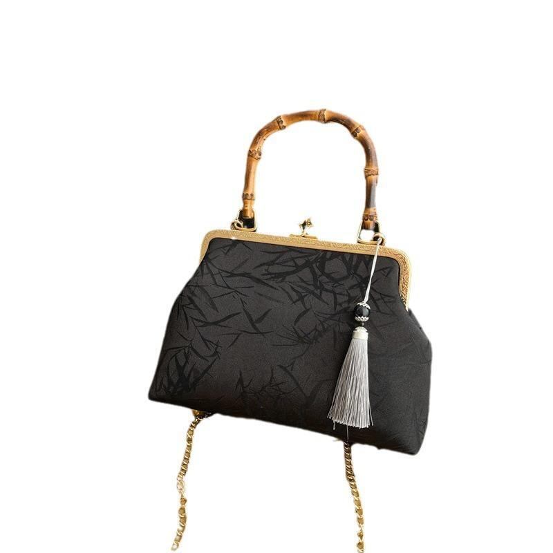 バッグ レディース 女性用 ショルダーバッグ ハンドバッグ がま口 シェル型 竹ハンドル 中国風 レトロ クラシック チャイナドレス風 ポリエステル デイリーユース 普段使い
