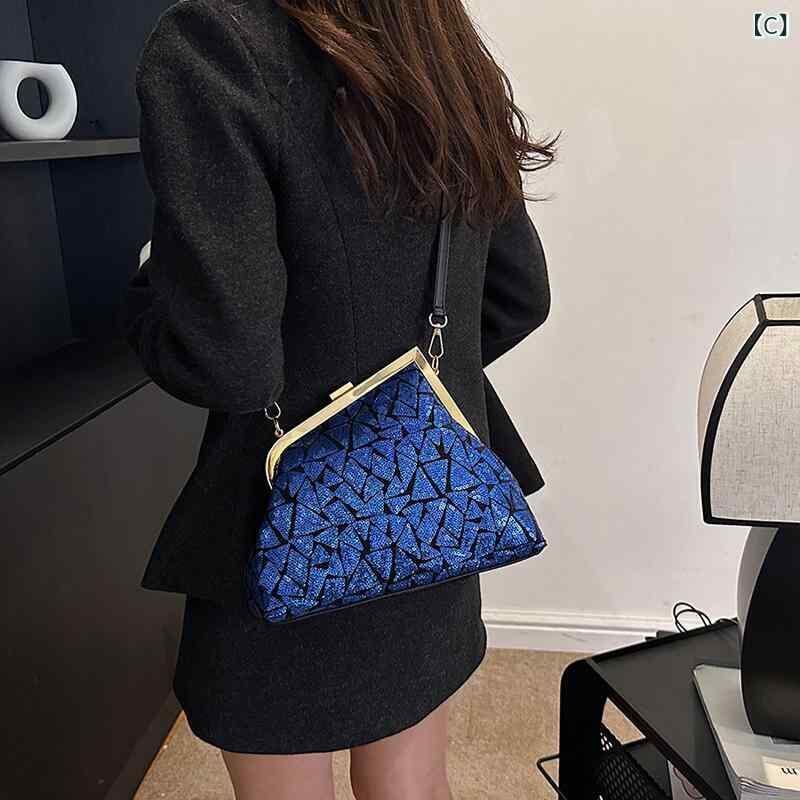 バッグ レディース 欧米ファッション レトロ ヴィンテージ スパンコール グラデーション シェル型 ハンドバッグ ショルダーバッグ 斜めがけ 合成皮革 パーティー フォーマル デイリーユース 秋冬