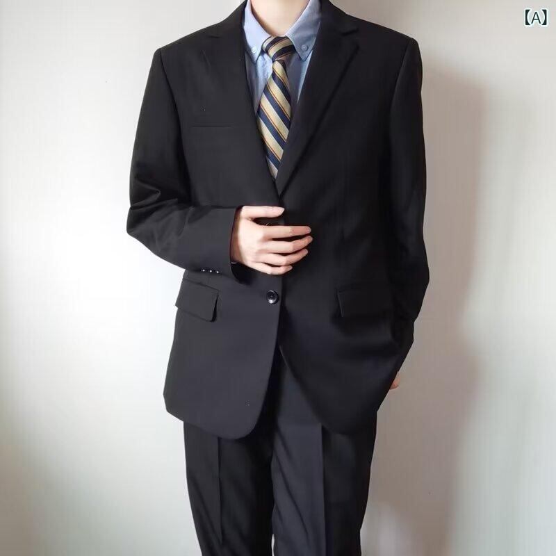 ジャケット メンズ カジュアル ゆったり ルーズフィット 高級感 韓国ファッション 学生 春秋 トップス ビジネススタイル ノーアイロン 無地 長袖 テーラードカラー ポリエステル混紡 単品 ブラック