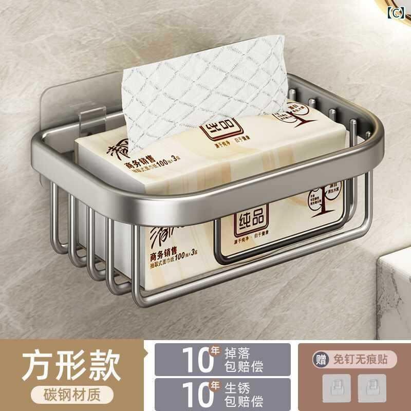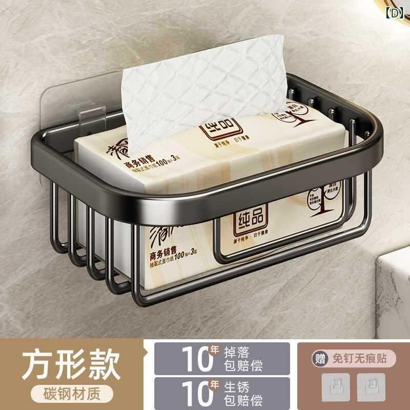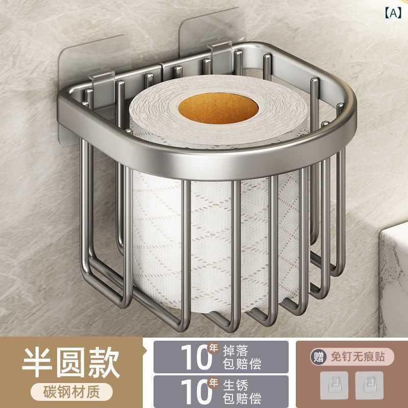トイレットペーパーホルダー ティッシュケース トイレ 洗面所 収納ラック 小物置き 穴あけ不要 壁掛け ウォールマウント 強化 プラスチック アルミ製 防水 ブラック ダークグレー シルバー