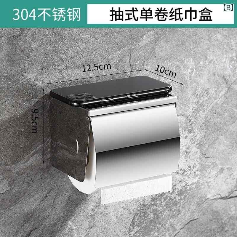 トイレットペーパーホルダー 穴開け不要 粘着式 壁掛け ステンレス製 サビに強い ホテル仕様 トイレ バスルーム 小物置き スマホ置き 多機能 防水 モダン シンプル ペーパーケース