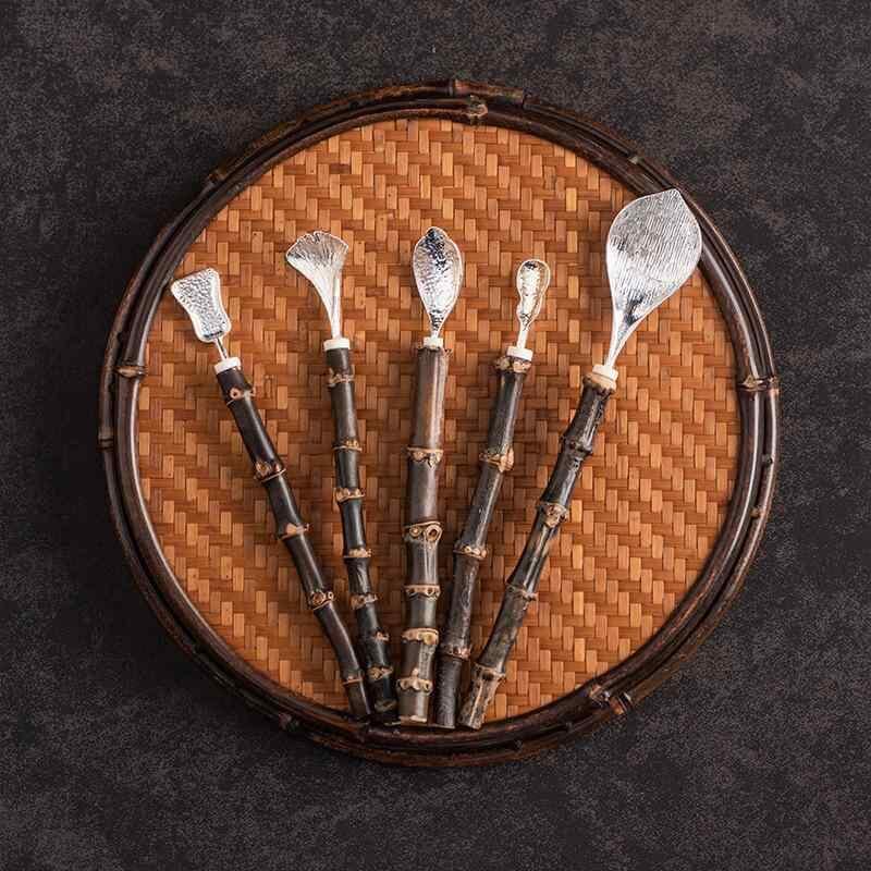 茶さじ 天然紫竹 持ち手 柄 竹製 レトロ クラシック ハンドメイド 合金製 茶葉取り シャベル スコップ 茶杓 ティーメジャー 茶道具 喫茶
