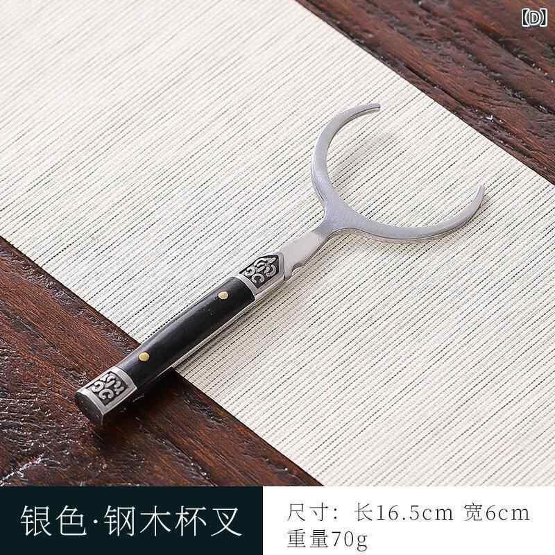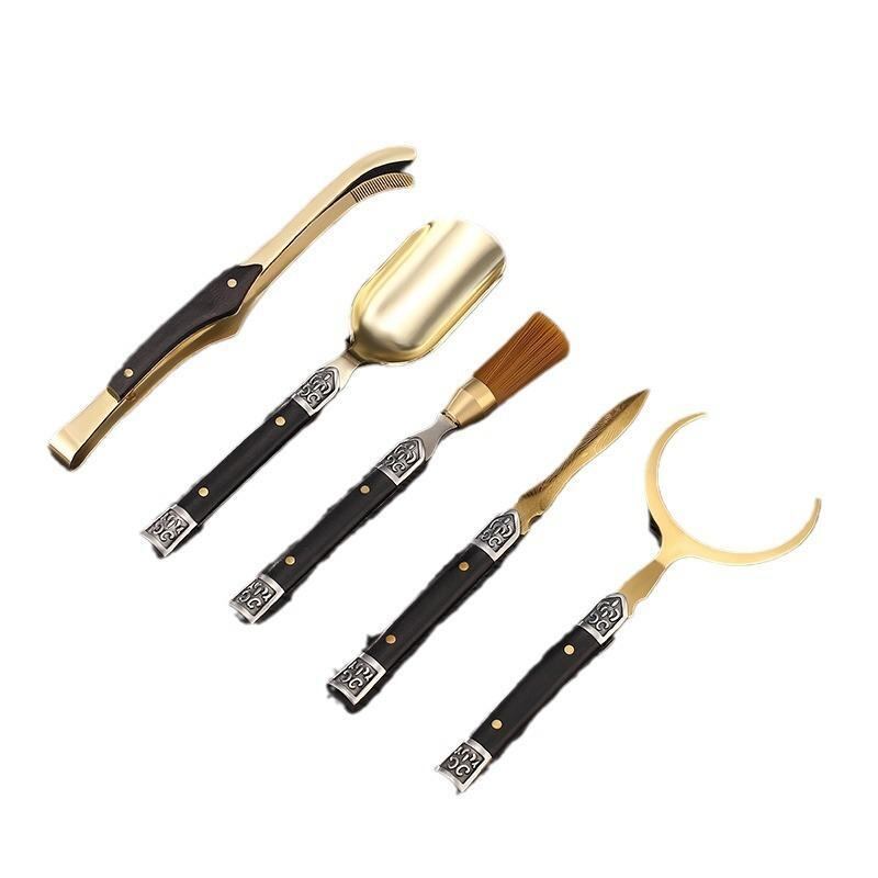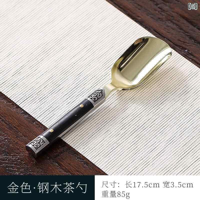 茶道具 中国茶器 ステンレス 黒檀製 5点セット 茶挟 茶匙 茶刀 カップフォーク 養壺筆 高級感 モダン お茶会 来客用 自宅用 銀色 金色