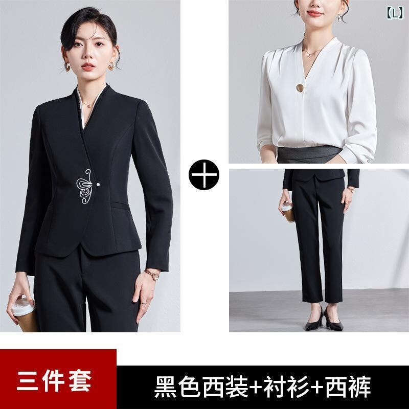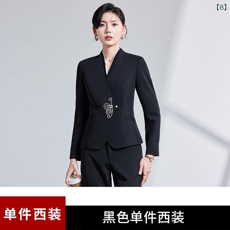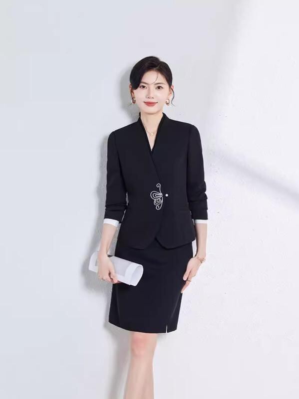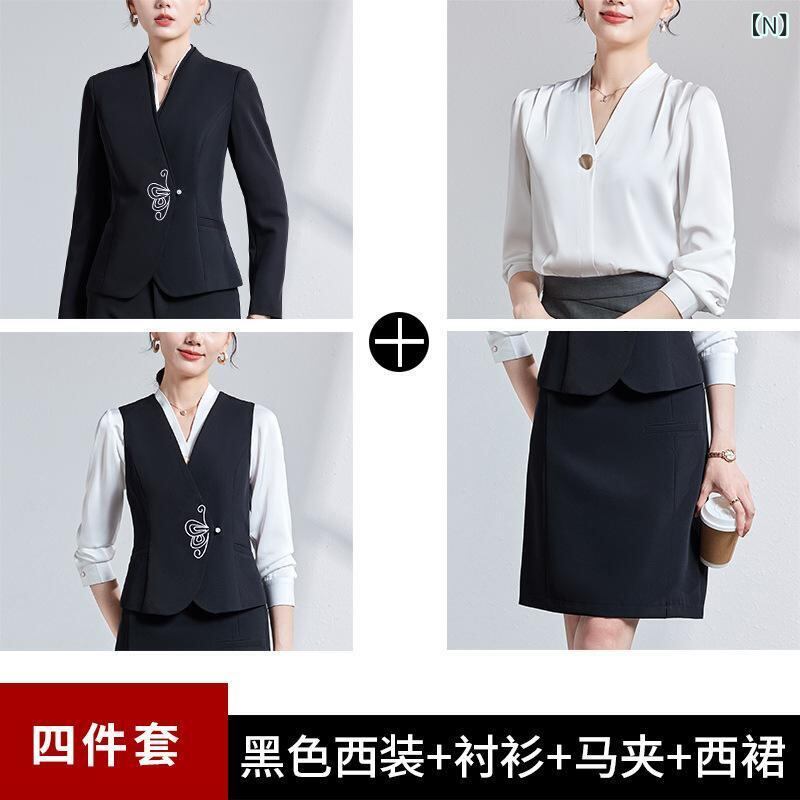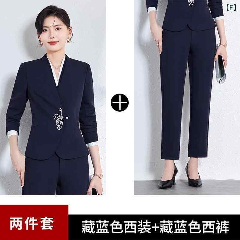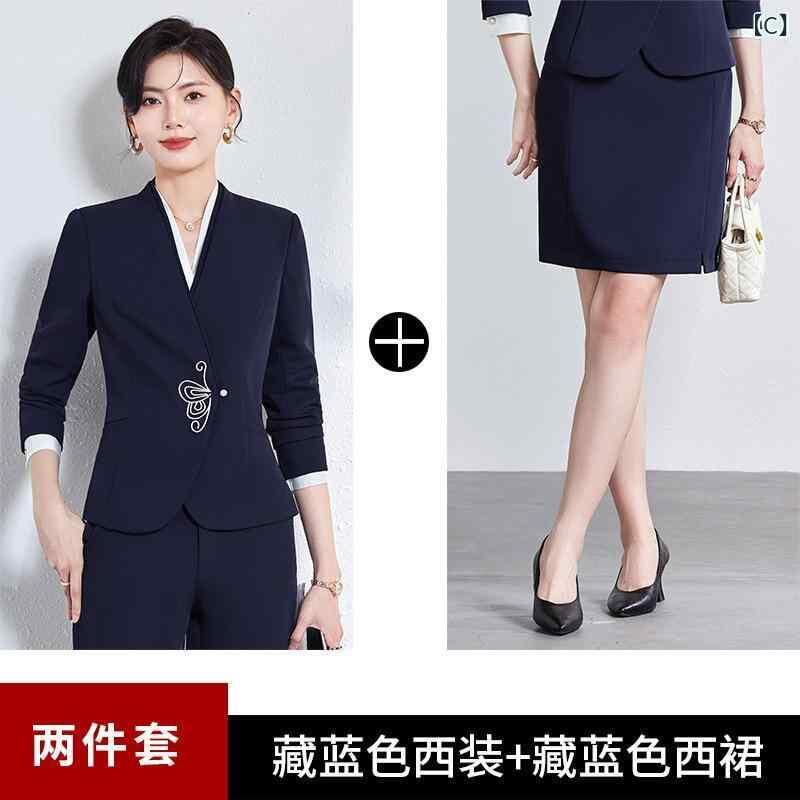 スーツ レディース セットアップ ジャケット パンツ スカート 長袖 春秋冬 上品 エレガント きれいめ 通勤 オフィス ビジネス 接客 事務服 ホテル ユニフォーム 制服 ポリエステル スリム 美シルエット 1つボタン ネイビー ブラック