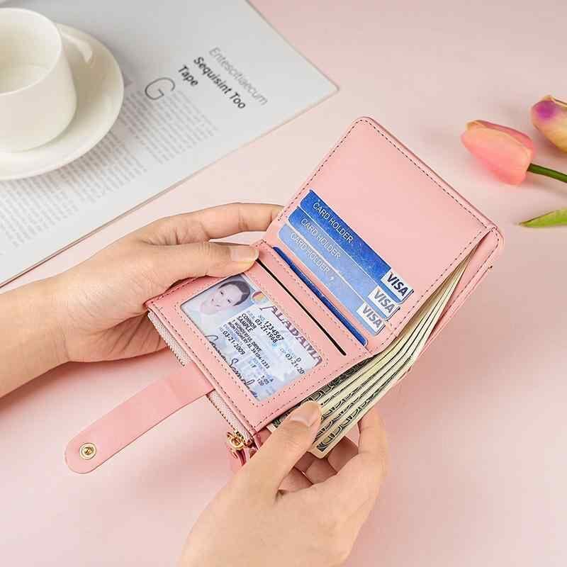ウォレット レディース 女性用 韓国風 おしゃれ PUレザー 石目調 型押し 二つ折り コンパクト ショート 大容量 多機能 スナップボタン ファスナー付き 小銭入れ コインケース カード入れ 普段使い