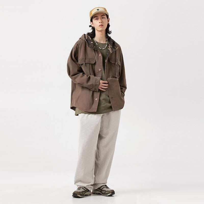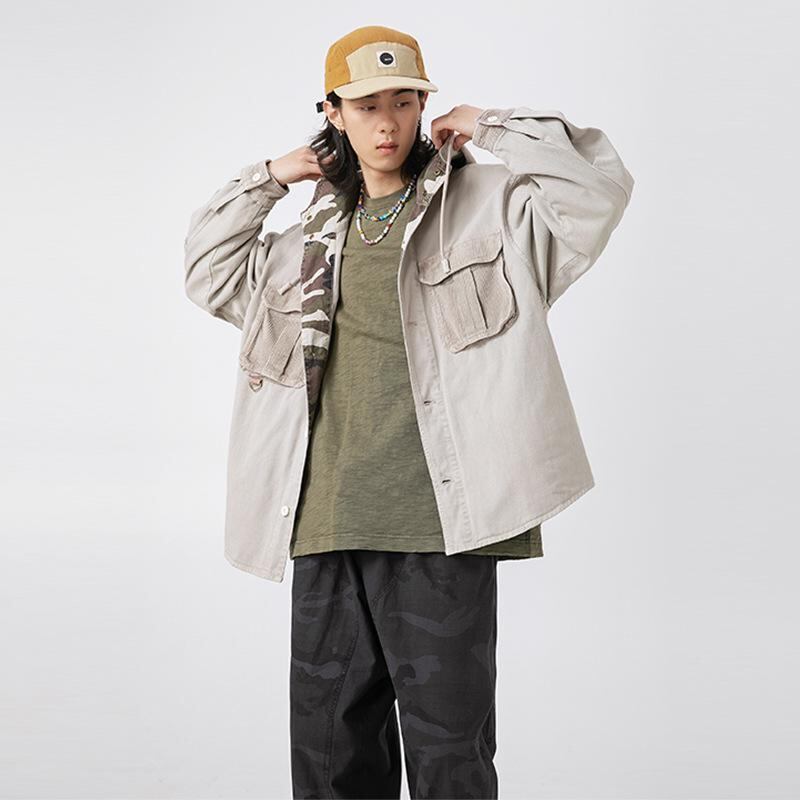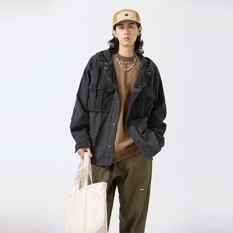 ジャケット メンズ コーデュロイ 切り替え 迷彩柄 フーディ コットン パッチポケット 裏地 厚手 植物染め デザイン ブルゾン 大きいサイズ カジュアル スリムフィット
