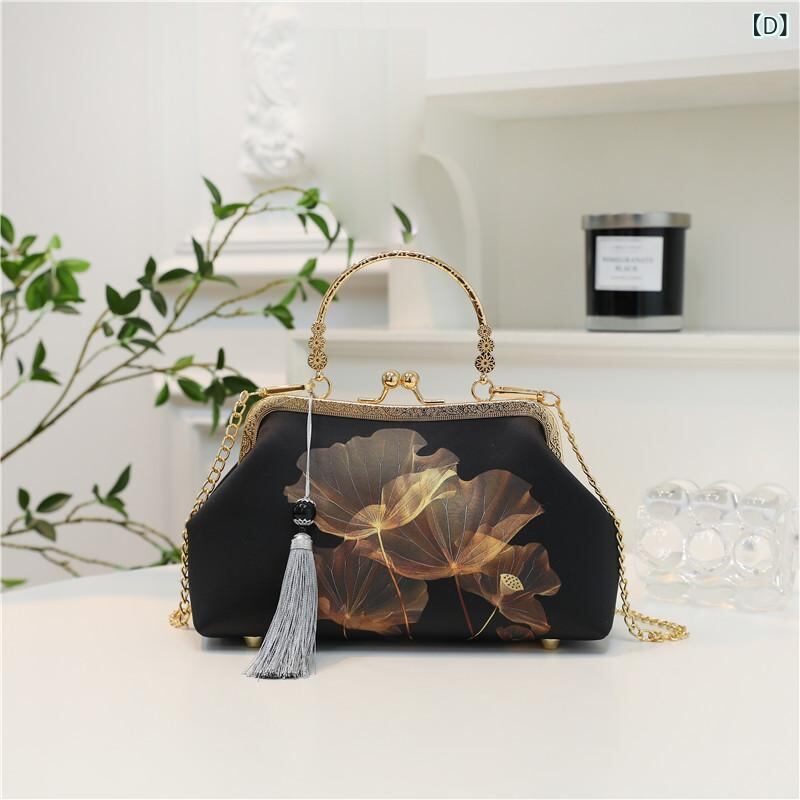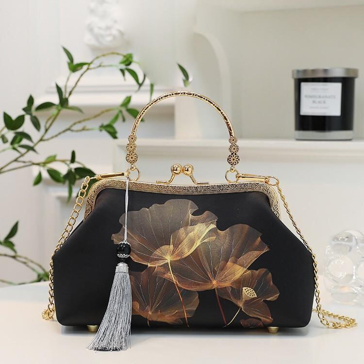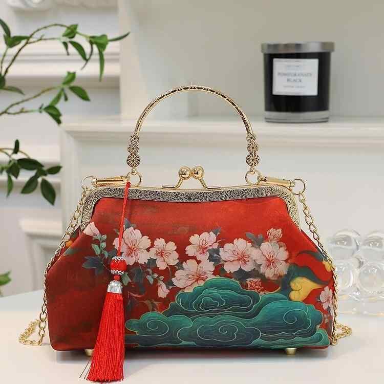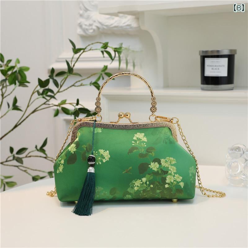 バッグ レディース レトロ チャイナドレス 口金 ハンドバッグ ショルダーバッグ 鞄 小さめ 貝殻型 ポリエステル製 ソフト 日常使い 夏